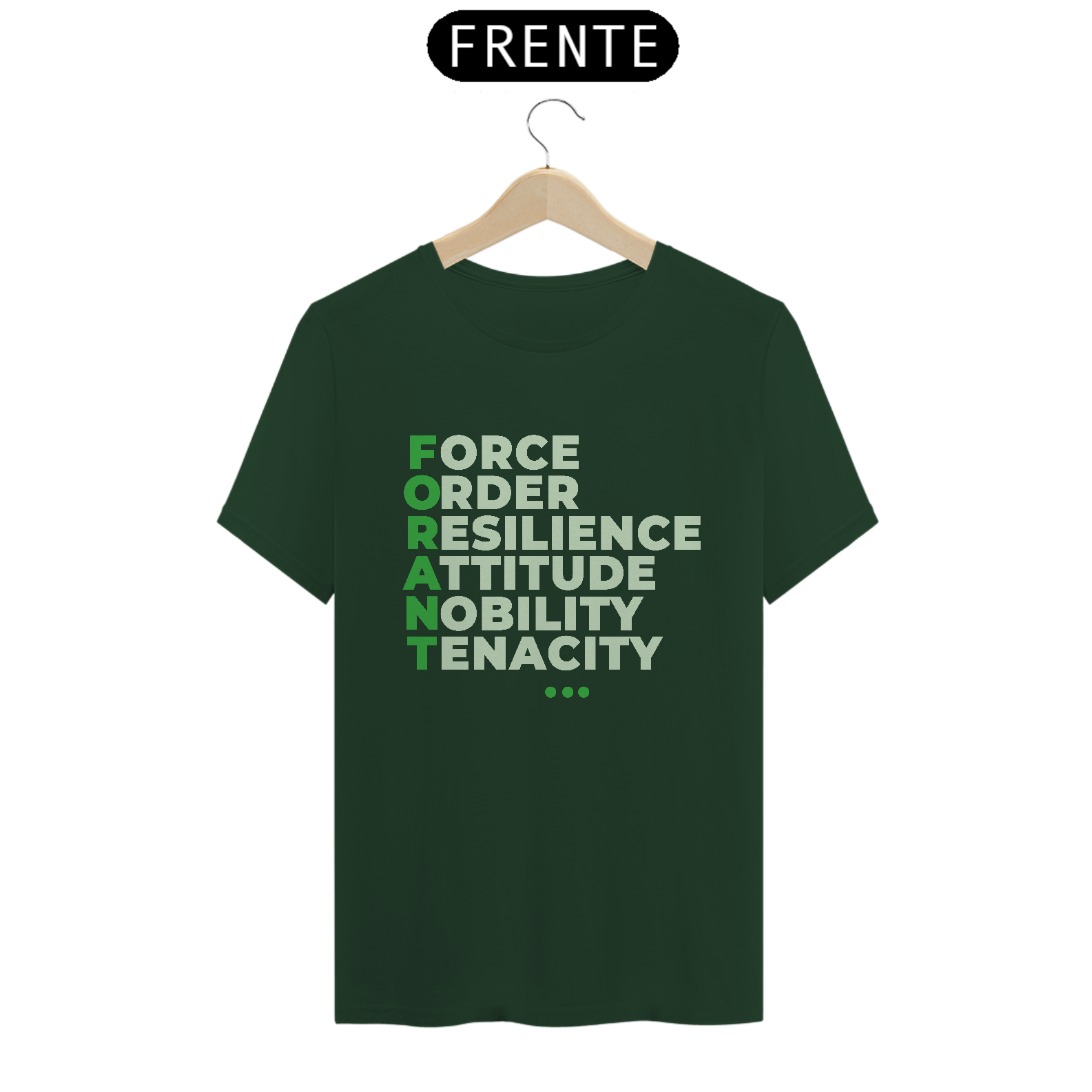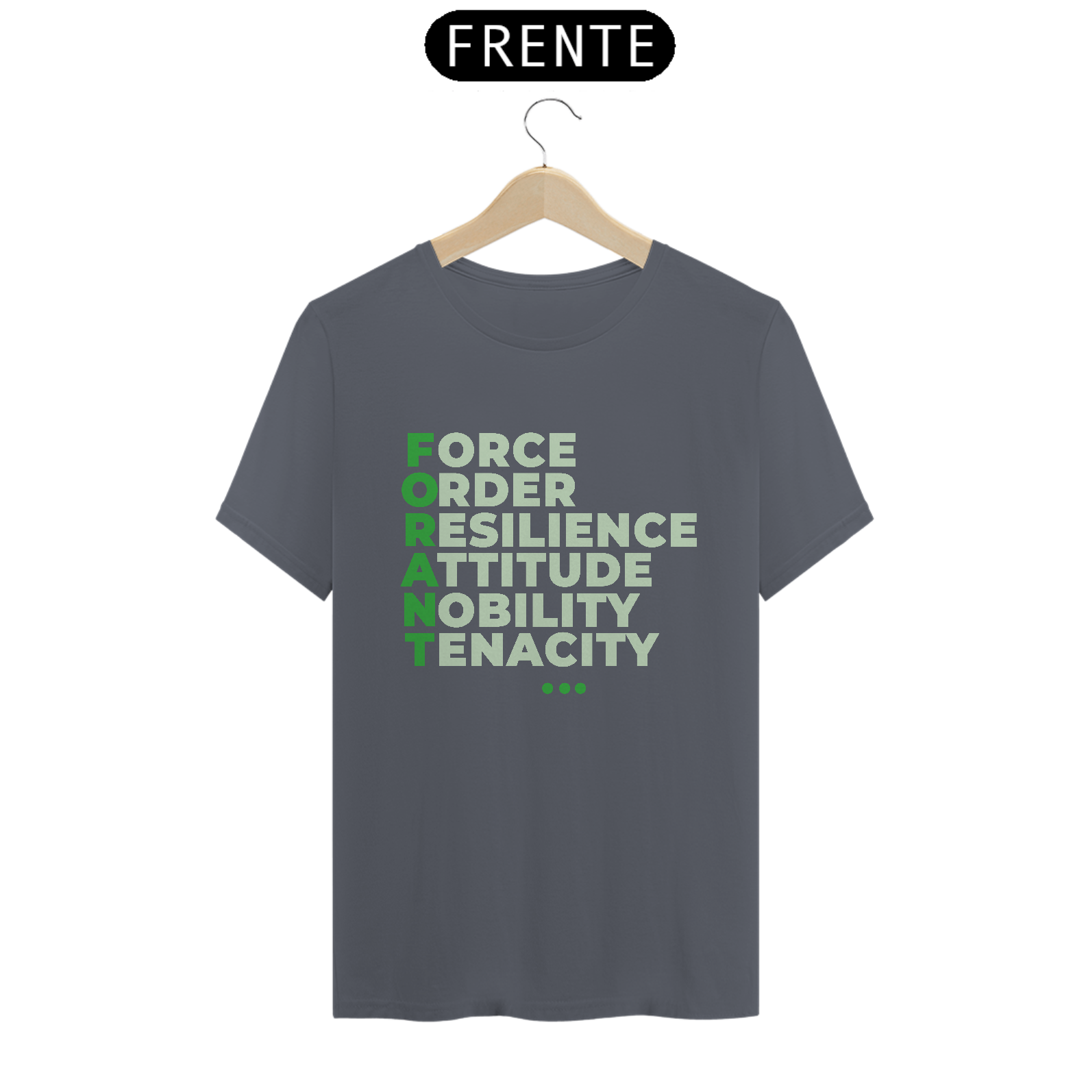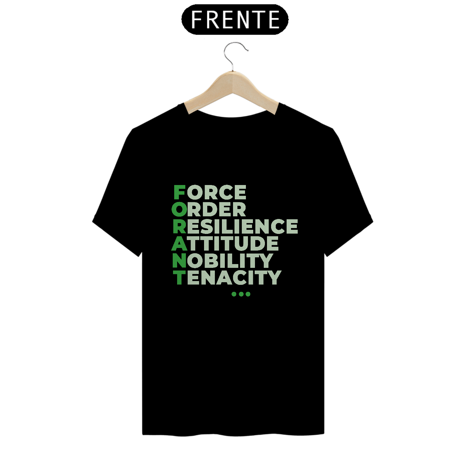 A camiseta FORANT Manifesto traz o poder do acrônimo FORANT estampado em design tipográfico elegante, representando seis pilares que inspiram atitude, propósito e superação: