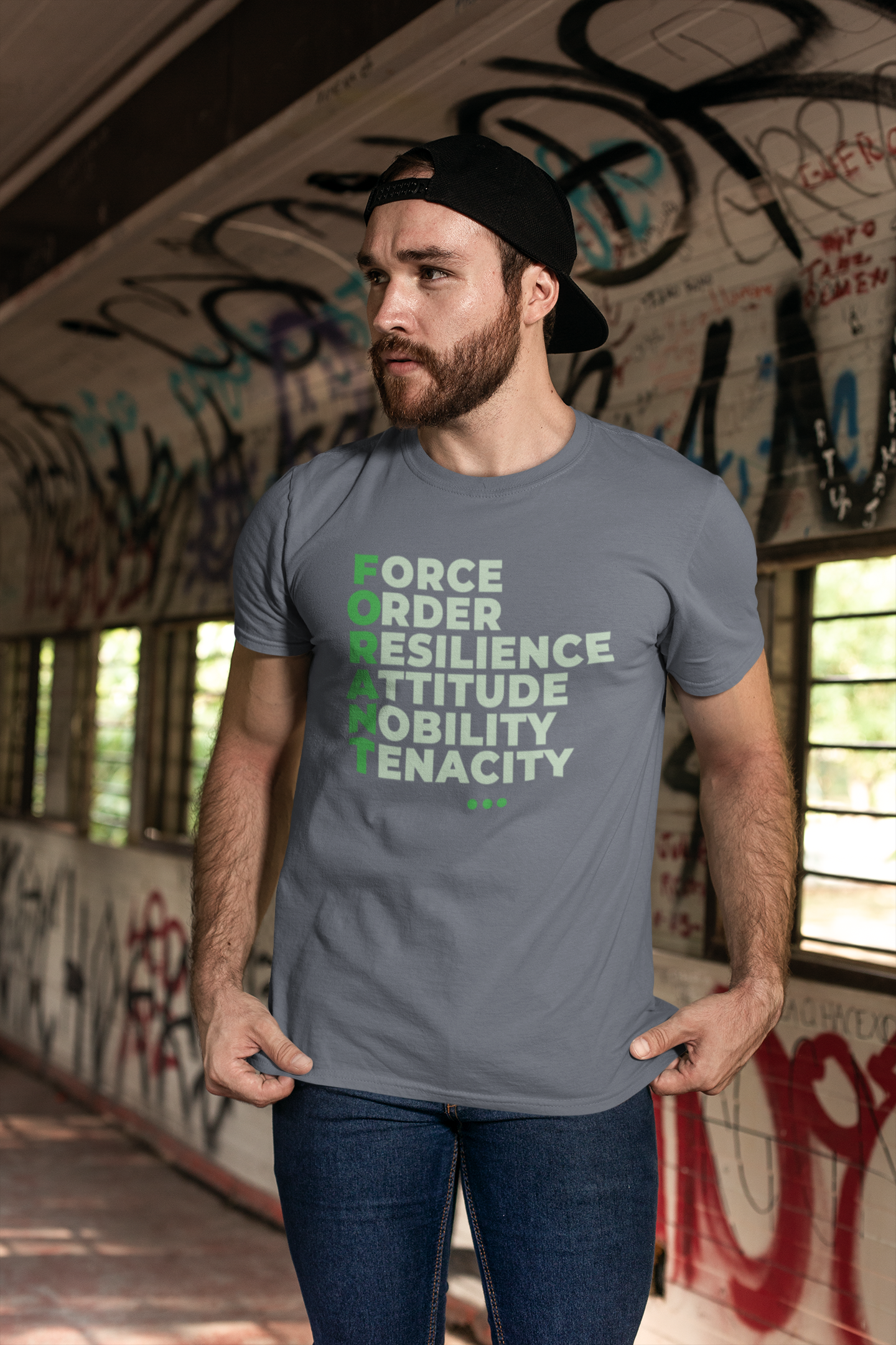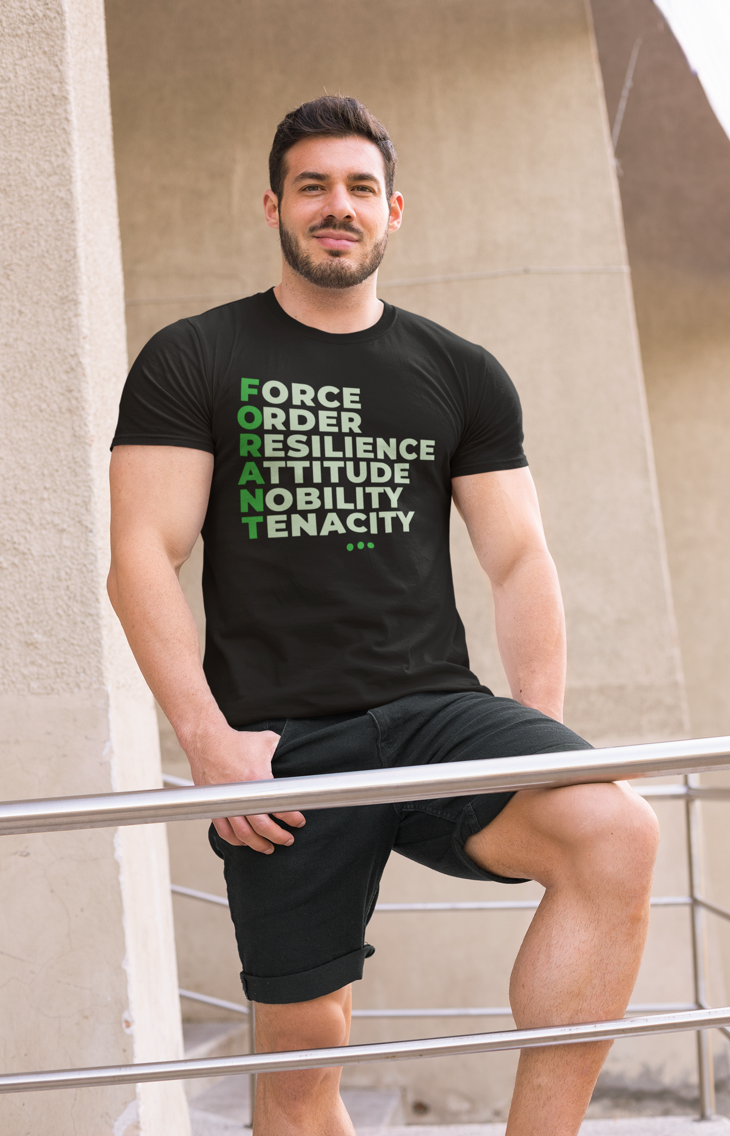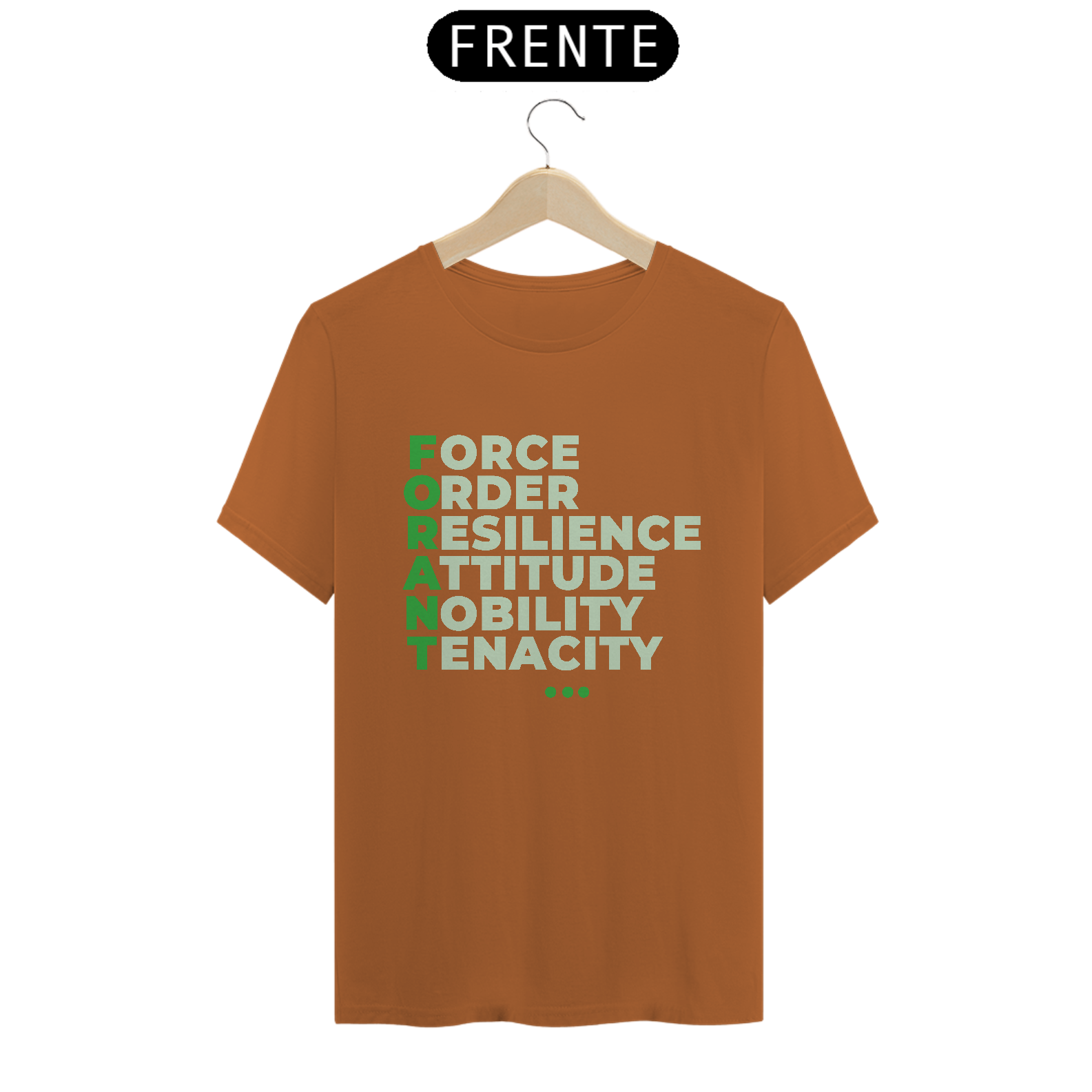 A camiseta FORANT Manifesto traz o poder do acrônimo FORANT estampado em design tipográfico elegante, representando seis pilares que inspiram atitude, propósito e superação: